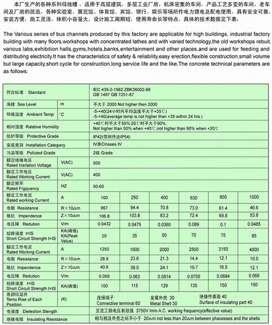 铜铝复合型母线槽内部采用典型的三明治结构,是一种灵活可靠的配电系统,设计合理、具有稳定可靠、配电效能高、散热好、电压降低、耐机械冲击和安装简便等特点,电流从250A至5000A,能满足不同用户群的配电需求。防护等级可达IP65,可应用在任何恶劣环境的场合,外壳采用铝镁合金,同时外壳可作为100%接地导线,同时设计有双N排系统,故能满足许多工程中200%中性线的要求。产品绝大多数原材料从国外进口,铜排镀铅锡或镀银,既降低接触电阻,也提高母排载流量。